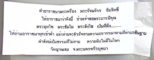 หลวงพ่อคูณ ปริสุทโธ วัดบ้านไร่ จ.นครราชสีมา ยังได้บอกศิษย์ว่า ให้ไปทำบุญกับหลวงปู่ชื้น จ.อยุธยา