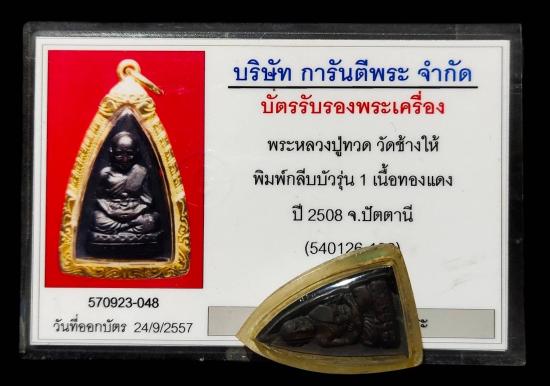 พระหลวงปู่ทวด วัดช้างให้ พิมพ์กลีบบัวรุ่น1 เนื้อทองแดง ปี2508 จ.ปัตตานี สภาพสวยๆ พร้อมบัตรG-PRA