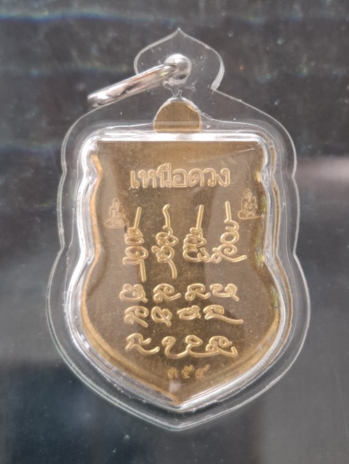 เหรียญพระราหูอมจันทร์ หลวงปู่ศิลา เมตตาอธิษฐานจิต รุ่นเหนือดวง เนื้อทองเหลืองลงยา เลี่ยมกรอบ #2 |