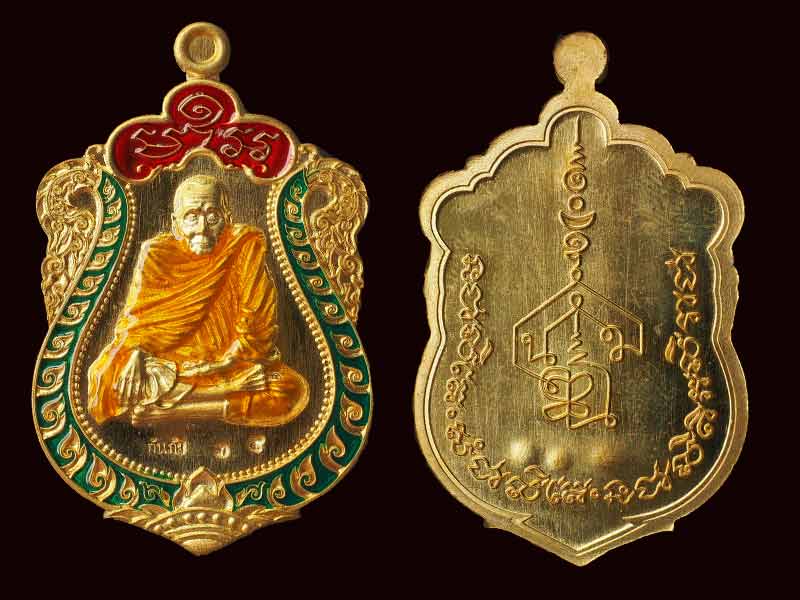 เหรียญเสมา รุ่นบูชาครู ลพ.กันภัย วัดดอนศาลา ปี 62 เนื้อทองฝาบาตร ลงยา#34 จ.พัทลุง
