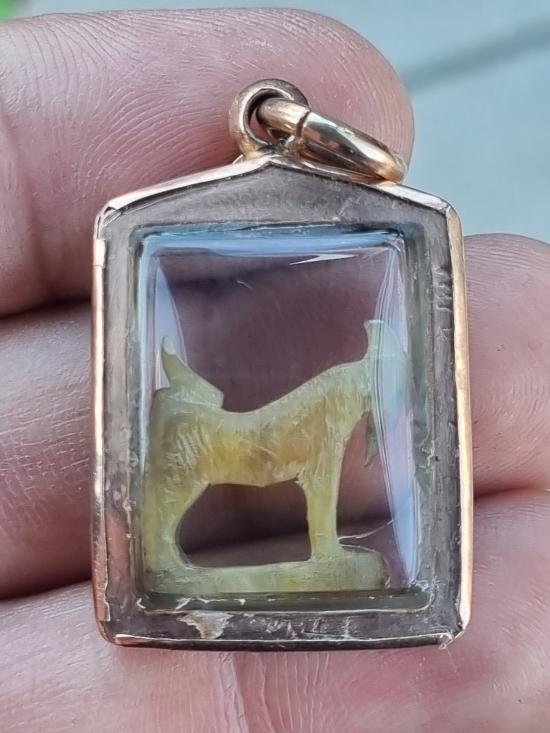 ชื่อพระเครื่อง ++ แพะแกะจากเขาควายเผือก เลี่ยมนาคเก่า ซุ้มเป็นหยกหุ้มด้วยทองคำ งานเก่า ++