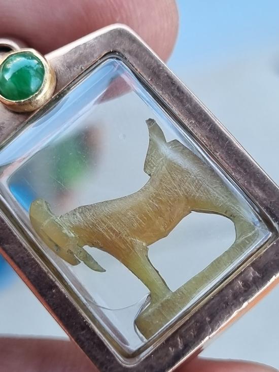 ++ แพะแกะจากเขาควายเผือก เลี่ยมนาคเก่า ซุ้มเป็นหยกหุ้มด้วยทองคำ งานเก่า ++