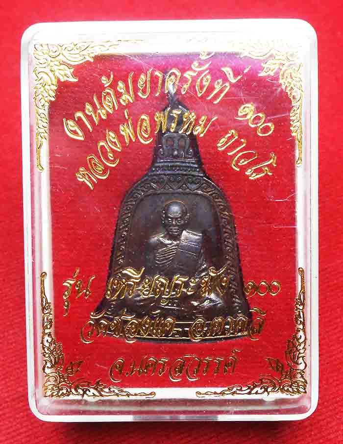 เหรียญระฆังพิมพ์ใหญ่ หลวงพ่อพรหม เนื้อทองแดงรมดำ ต้มยา100 ปี 2553