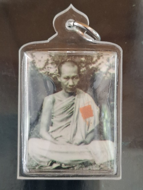 รูปภาพหลวงพ่อเกษม เขมโก หลังปั้มหมึก ติดจีวร ปี2518 ขนาด 1 นิ้ว |