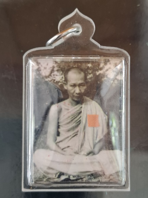 รูปภาพหลวงพ่อเกษม เขมโก หลังปั้มหมึก ติดจีวร ปี2518 ขนาด 1 นิ้ว #6 |