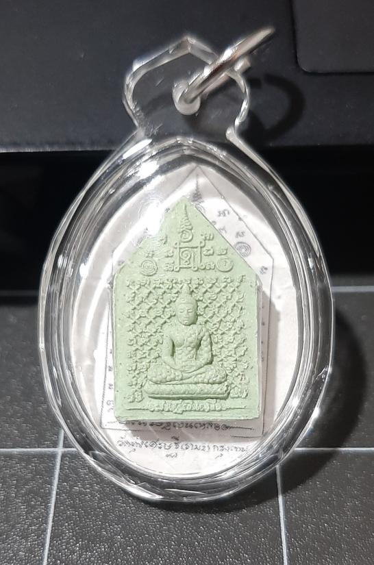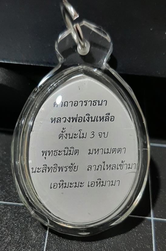พระหลวงพ่อเงินเหลือ หลวงพ่อเณร วัดทุ่งเศรษฐี เลี่ยมพร้อมใบคาถา บูชาได้ทุกที่ สีเขียวเหนี่ยวทรัพย์