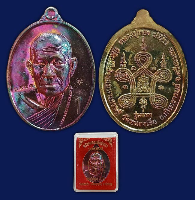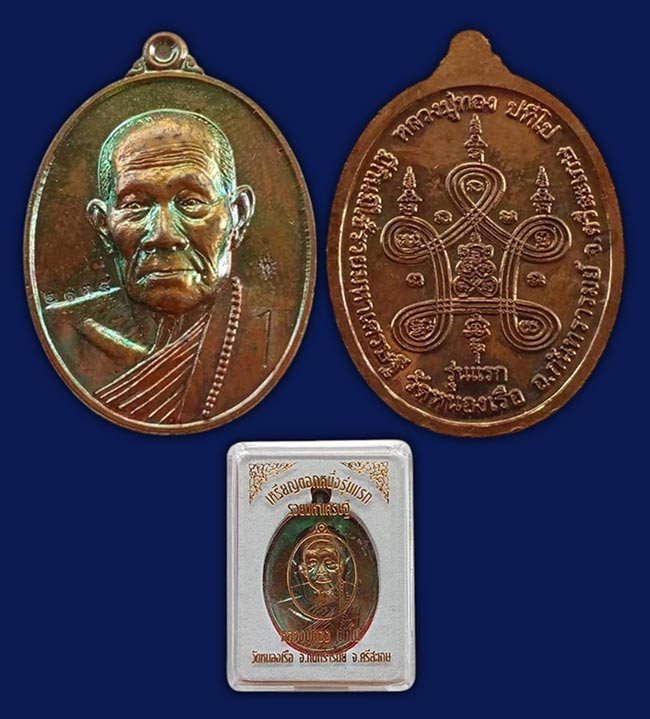 เหรียญตอก 1 รุ่นแรก รวยมหาเศรษฐี หลวงปู่ทอง วัดหนองเรือ ศรีสะเกษ ทีเดียว 3 องค์