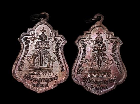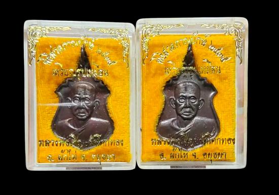 พระรูปเหมือนปั๊ม โบราณ รุ่นแรก หลวงพ่อเชิญ วัดโคกทอง เนื้อทองฝาบาตร พร้อมกล่องเดิม ปี 2535( จำนวน 2องค์ ) |