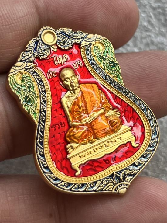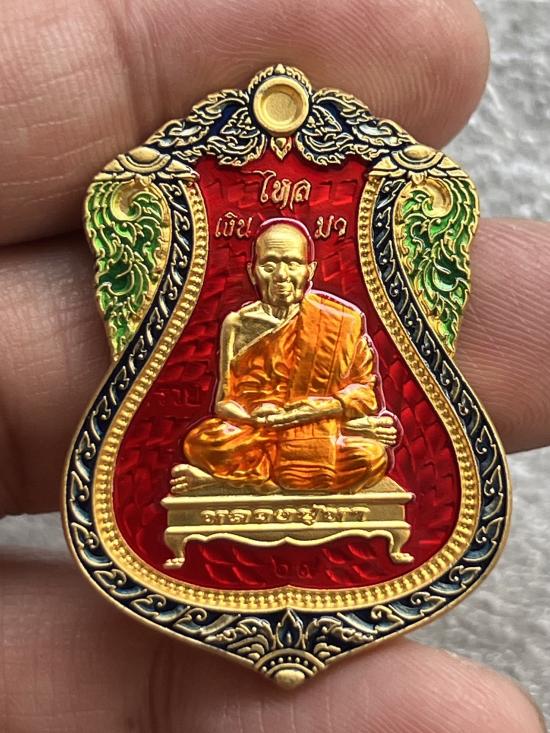 เหรียญเสมา เงินไหลมา หลวงปู่หา สุภโร วัดสักกะวัน จ. กาฬสินธุ์ ปี63 กะไหลทองลงยาแดง เลข69 พร้อมกล่อง