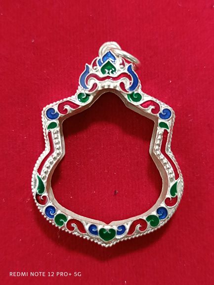 กรอบเงิน 92.5% มือ 1 ลงยาสุโขทัยยกซุ้มหัวสิงห์ ใส่เสมาหลวงปู่ทวดปี 2505 หน้าแก่