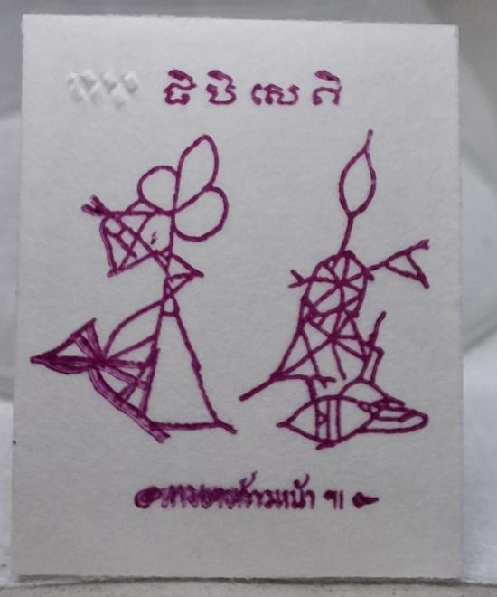 ภาพถ่ายคุณแม่บุญเรือน โตงบุญเติม ล้างอัดด้วยวิธีการห้องมืด (ไม่อัดกระจก) ความคมชัดของรูปสมบรณ์สวยงามถึงขีดสุด ตอกโค้ดพุทโธทุกใบ ด้านหลังปั๊มตรายาง เป็นรอยเท้าคุณแม่ และเขียนว่า ทางขาวก้าวหน้า ด้านบนลงหัวใจปฏิสังขาโย (จิปิเสคิ)