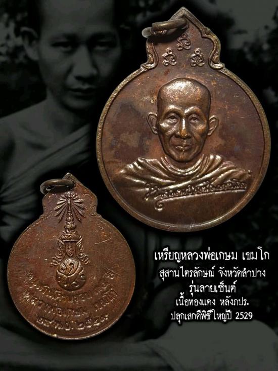 หลัง ภปร ปี 2529 เนื้อทองแดงรมน้ำตาล อณุสรณ์ครบรอบ ๗๕ ปี สภาพสุดคลาสสิค น่าเก็บน่าใช้ ***หลวงพ่อเกษม เขมโก พระผู้ทรงอภิญญาบารมี ต้นบุญแห่งล้านนาไทย ท่านได้สละตำแหน่งเจ้าอาวาส เดินทางมุ่งหน้าสู่สุสาน ป่าช้า และปฏิบัติธรรม ตลอดอายุขัยของท่าน ท่านเป็นพระอริยะสงฆ์ ที่มีวัตรปฏิบัติ และปฏิทา ที่ควรแก่การกราบไหว้เป็นอย่างยิ่ง วัตถุมงคลที่ท่านได้อธิฐานจิติให้แต่ละอย่าง ล้วนเปี่บมล้นไปด้วยพลังอันศักดิ์สิทธิ์ แห่งมห่พุทธธานุภาพ และเกิดประสบการณ์มากมายกับผู้ที่ศรัทธา ดังนั้นวัตถุมงคลของท่านในปัจจุบัน จึงเป็นที่เสาะแสวงหา เพื่อมีไว้บูชา ของลูกศิษย์ลูกหา