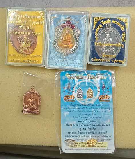 เหรียญลพ.ปัญญา วัดกกกว้าว นครสวรรค์ +เหรียญลป.เล็ก วัดทำนบ อ่างทอง+เหรียญลป.ศุข ย้อนยุค+เหรียญลพ.สมบุญ วัดดอนตาล +ขุนแผนใบมะขาม วัดแค สุพรรณบุรี 2 องค์ |