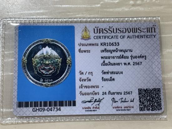 (เคาะแดง25000) +บัตรสมาคม เหรียญกลมหนุมาน พระอาจารย์ต้อม เนื้อเงินลงยา