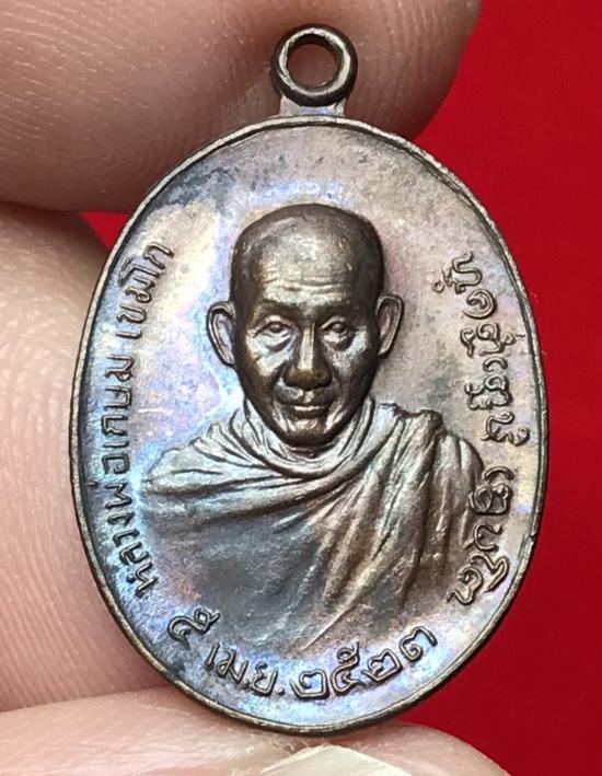 เหรียญ หลวงพ่อเกษม เขมโก ภปร. ปี 2523 พิมพ์เล็ก เนื้อทองแดง ตามซอกมีรุ้งครับ
