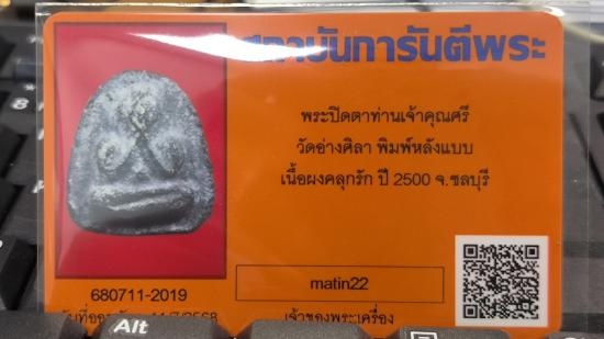 พระปิดตา ท่านเจ้าคุณศรี วัดอ่างศิลา เนื้อผงคลุกรัก พิมพ์หลังแบบ ปี 2500 สภาพสวย มาพร้อมบัตรรับรองจากทางเว็บจี