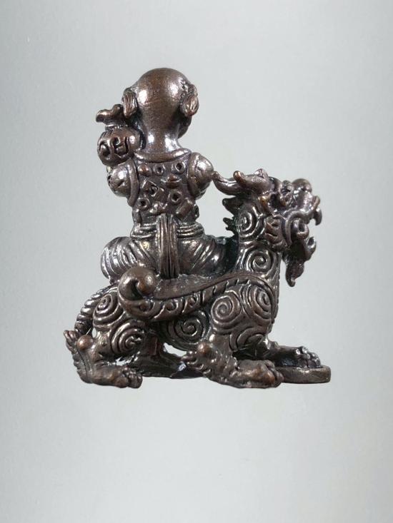 วัดใจ 150... กุมารเจ้าสัวมหาสมบัติ ขี่กิเลน เนื้อชนวนโลหะ หลวงพ่อปิ่น วัดหนองเกษร จ.ราชบุรี ปี2552 |