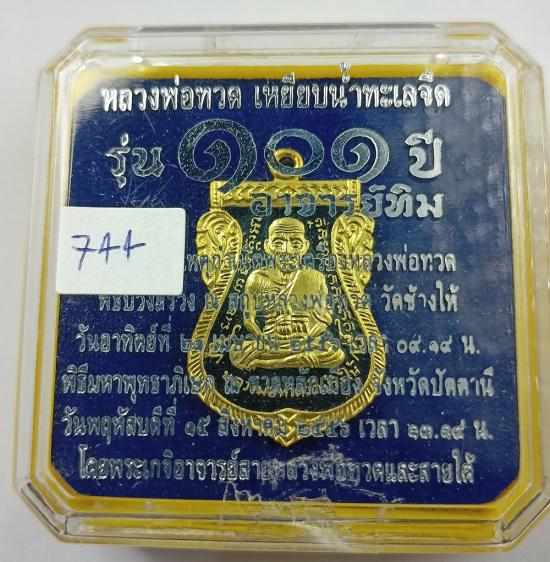 เหรียญเสมาหน้าเลื่อน หลวงพ่อทวด 101ปี อ.ทิม เนื้อทองแดงกะไหล่ทองลงยาสีดำ เบอร์ 744 พร้อมกล่องเดิมครับ