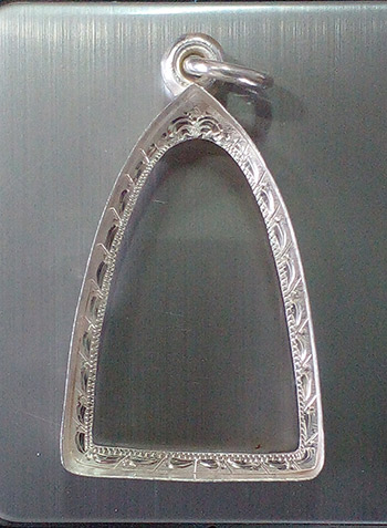 <<กรอบเงินแท้95%>>มือหนึ่ง ยกซุ้มหัวสิงห์ ใส่พระหลวงปู่ทวดหลังหนังสือ ปี24 งานมือช่างทองแกะลายลึกๆสวยๆ หนัก5.81g