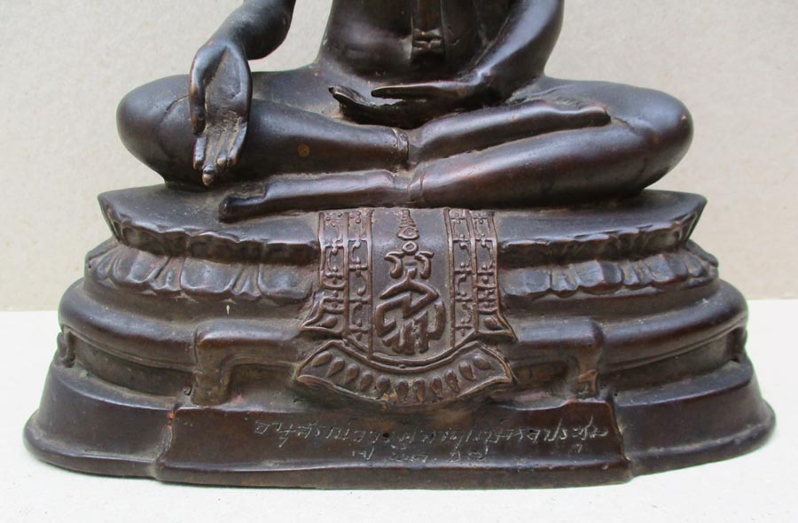 พระบูชาปางประทานพร ฐานผ้าทิพย์มีอักษรย่อ ส.น.ม. อนุสรณ์วางศิลาฤกษ์หอประชุม 7 มี.ค.17 เนื้อโลหะวรรณะแดงมันเทศ เทดินไทย !!