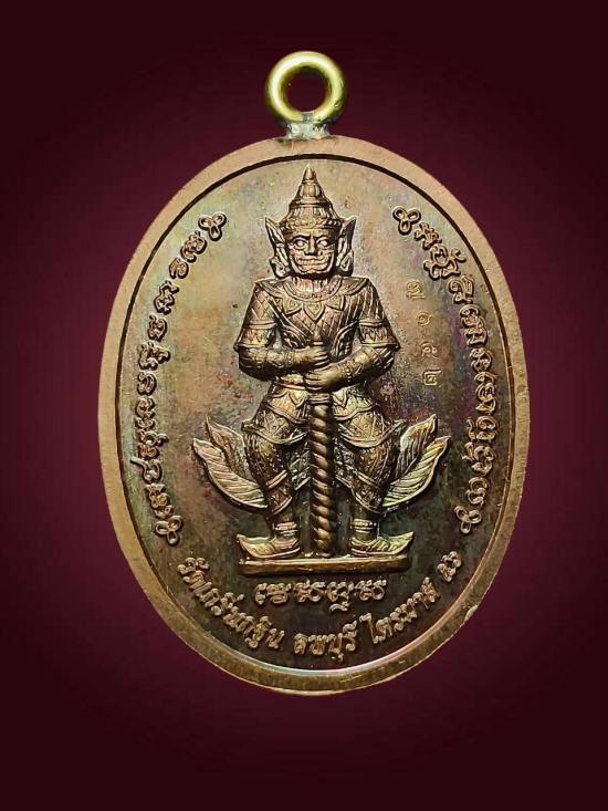 เหรียญชนะจน หลวงพ่อเพี้ยน วัดเกริ่นกฐิน จ.ลพบุรี ไตรมาส 2556 เนื้อทองแดงห่วงเชื่อม ตอกโค๊ต ตอกหมายเลข 7152 กล่องเดิม สภาพสวย