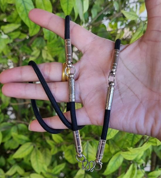 สร้อยคอคล้องพระเชือกร่มตอกหมุดหนาแน่น คล้องพระได้ 3 องค์ ขนาดเชือกร่มอย่างหนา 4-5 มิล แข็งแรงทนทาน ( ของใหม่ )
