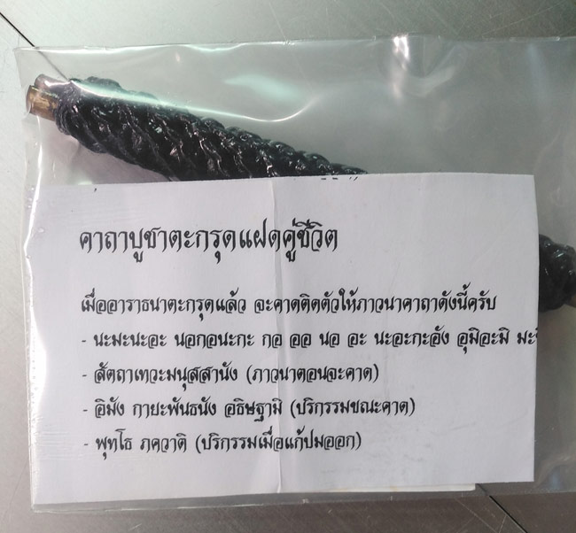 ..วิธีใช้.-เมื่ออาราธนาตะกรุดแล้ว จะคาดติดตัวให้ภาวนาคาถาดังนี้ นะมะนะอะ นอกอนะกะ กอ ออ นอ อะ นะอะกะอัง อุมิอะมิ มะหิสุตัง สุนะพุทธังอะสุนะอะ (บริกรรมก่อนคาด) สัตถาเทวะมนุสสานัง(ภาวนาตอนคาด) อิมัง กายะพันธนัง อธิษฐามิ (บริกรรมขณะคาด) พุทโธ ภควาติ (บริกรรมเมื่อแก้ปมออก) ใช้ได้ทั้งหญิงและชาย