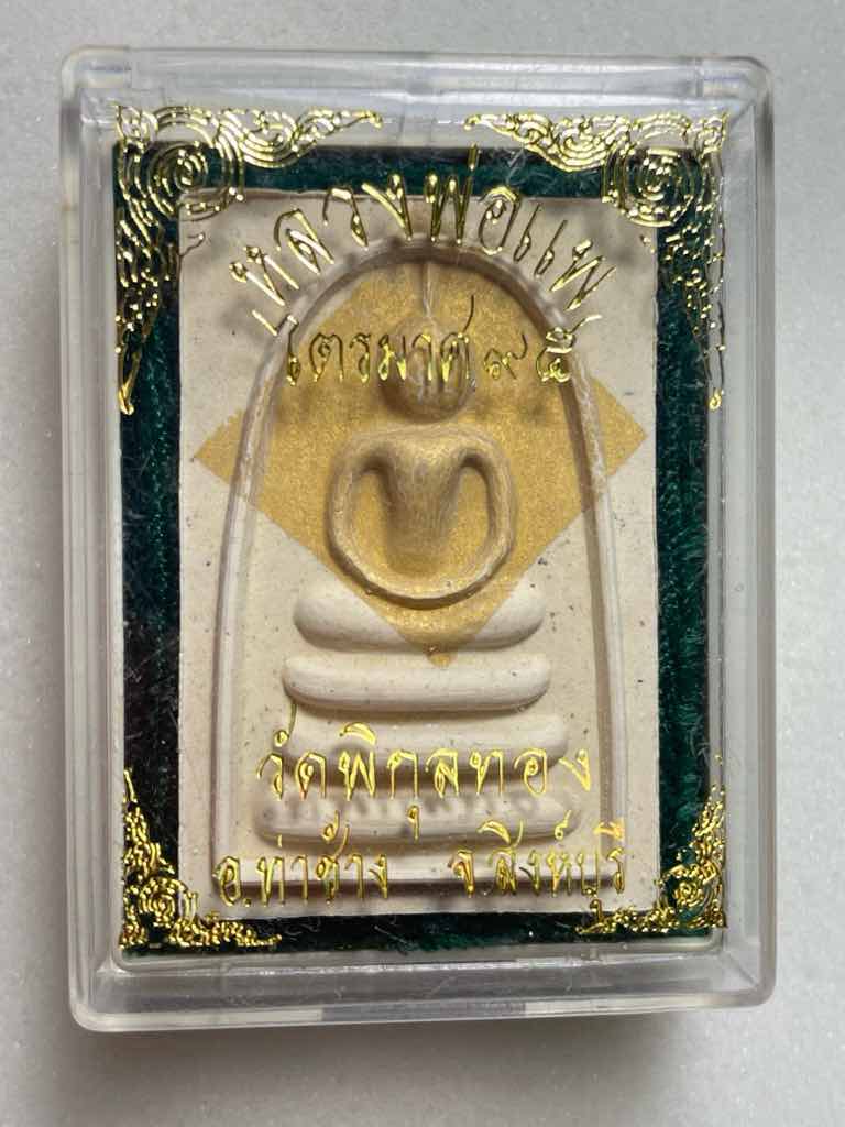 800.- พระสมเด็จไตรมาส 95 หลวงพ่อแพ วัดพิกุลทอง จ.สิงห์บุรี ไกรเซอร์พิเศษ ปี 2540 ฝัง ตะกรุดทองคำ 3 ดอก ,โรยเกศาและผงตะไบทองคำ ตอกเลข สวยเดิมคากล่อง พร้อมบัตรรับรอง จากวัด |