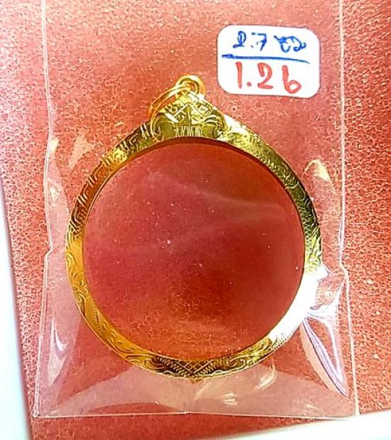 กรอบทองคำแท้ยกซุ้มสิงห์ ใส่เหรียญกลม/ลูกอม/จอในกรอบ 2.7ซม.//ลูกอมที่ใส่ได้ต้อง2.5ซม.น้ำหนัก 1.26 กรัม