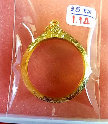 กรอบทองคำแท้ยกซุ้มสิงห์ ใส่เหรียญกลม/ลูกอม/จอในกรอบ 2.5ซม.//ลูกอมที่ใส่ได้ต้อง2.3ซม.น้ำหนัก 1.14 กรัม