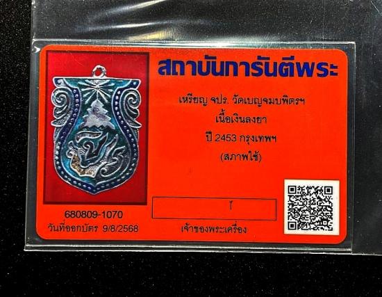 เหรียญ จปร. เนื้อเงินลงยาโบราณ ปี 2453 วัดเบญจมบพิตร (rare item)++บัตรgpra