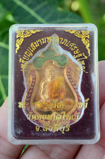 เหรียญเสมามหาลาภเศรษฐีใหญ่ หลวงพ่อเสือ ตาทิพย์ วัดดอนไผ่ใหญ่ จ.สิงห์บุรี เนื้อทองเหลืองลงยา ปี 2555 ตอกโค๊ต เลข ๒๐๙ พร้อมกล่องยังไม่ได้แกะซิล ครับ