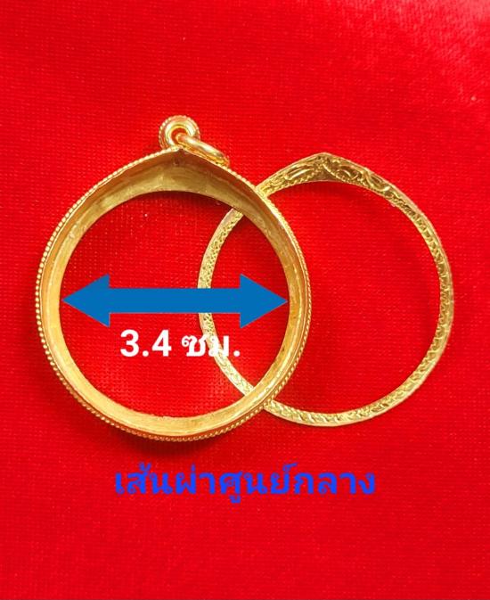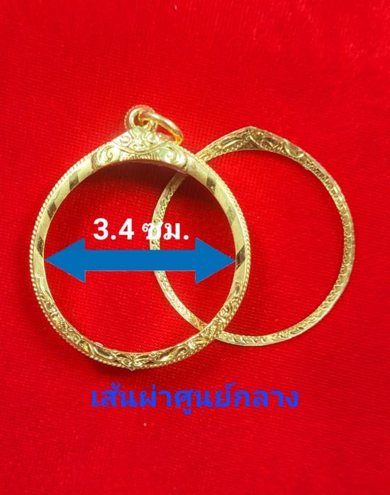กรอบทองคำแท้ ทรงกลม (เส้นผ่าศูนย์กลาง 3.4 ซม.) น้ำหนักประมาณ 8.53 กรัม เปอร์เซ็นสูง