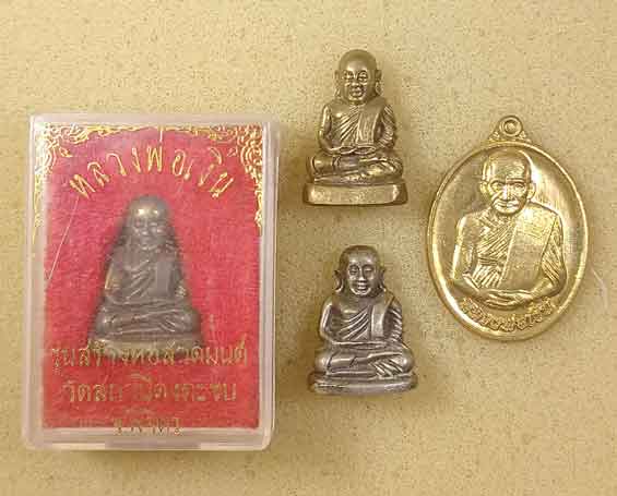 รูปหล่อ 3 องค์ + เหรียญวัดทรงธรรม หลวงพ่อเงิน |