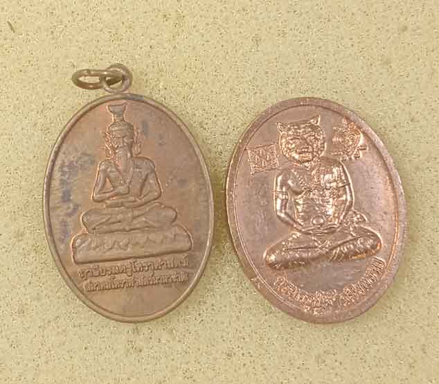 เหรียญพระพรหม อ.ทองแถม ศาสตระรุจิ อาจารย์ใหญ่ในสายวิชาการพรหมศาสตร์ 2 เหรียญ + เหรียญบรมครูศาสตร์ ดร.ภิญโญ พงษ์เจริญ + เหรียญบรมครูปู่เจ้าสมิงพราย |
