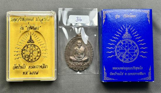 เหรียญหลวงพ่อคูณ วัดบ้านไร่ รุ่น "เปิดโลก" ปี 57 "เนื้อนวโลหะ" พิเศษ โค้ด ๙ ใต้เข่า |