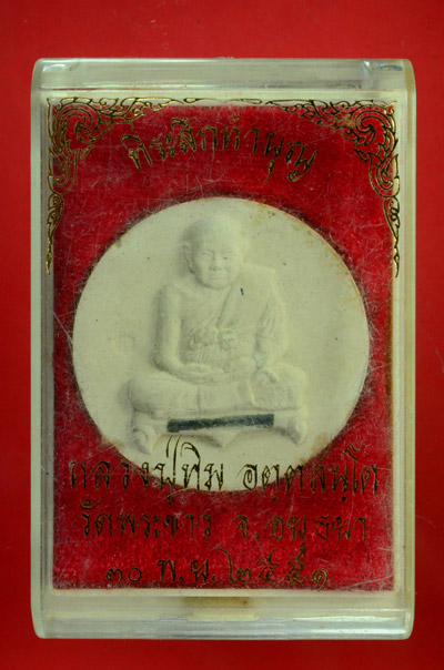 พระหลวงปู่ทิม วัดพระขาว พิมพ์จันลอย หลังพญาครุฑ ฝังพลอยฝังตะกรุดเงิน ปี2551 เนื้อผง จ.อยุธยา พร้อมกล่องสวยครับ |