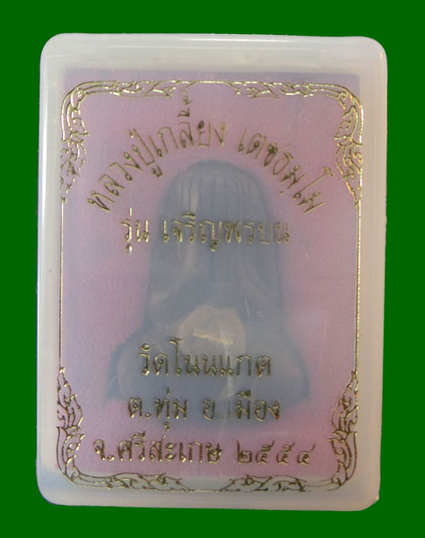 พระปิดตาเนื้อไม้พยุงดำ รุ่น เจริญพร หลวงปู่เกลี้ยง วัดโนนแกด แกะจากไม้มงคลพยุงดำ จารยันต์ทั่วทั้งองค์ ด้านหน้าอุดด้วยผงพุทธคุณไม้เทพมณีโคตร เกศา ตะกรุดทองคำจารมือ สภาพสวยพร้อมกล่องเดิม