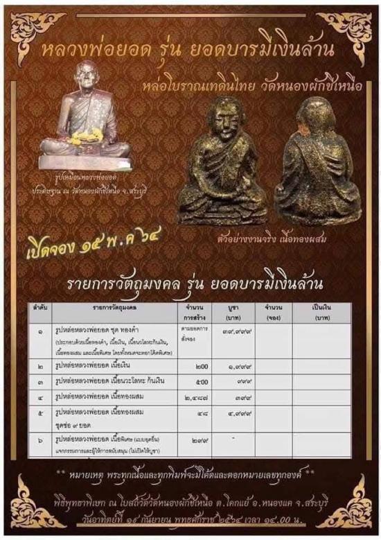 >>วัดใจค่ะ<< รูปหล่อหลวงพ่อยอด รุ่นยอดบารมีเงินล้าน เนื้อเงิน ปี 2564 สร้างน้อย 200 องค์