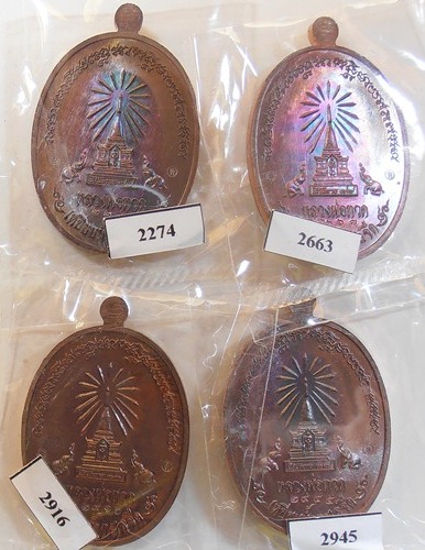 *** 4 เหรียญ ***หลวงพ่อทวด เหรียญหน้าอรหันต์(หน้าแก่) นิรันตราย๗๗ เนื้อทองแดงรมมันปู บล็อคเสาอากาศ พร้อมกล่องเดิม