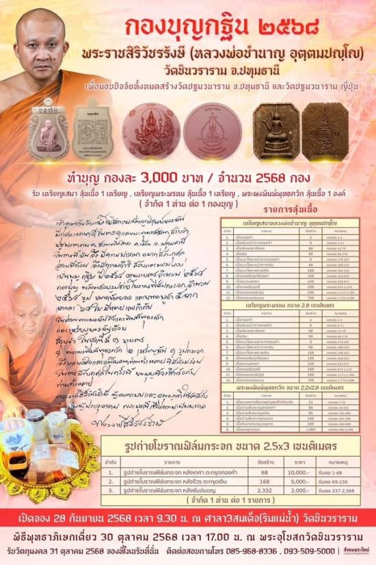 เปิดต่ำจอง 1450 หลวงพ่อชำนาญ วัดชินวราราม ชุดบุญกฐิน 2568 รับพระ 4 องค์แถมอีก 1 องค์ ราคาจอง ชุดละ 3,000 บาท