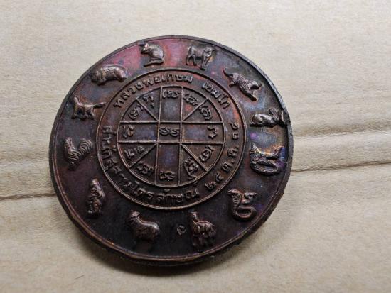 เหรียญกลม ราหู หลังยันต์ดวง 12 นักกษัตริย์ ลพ.เกษม เขมโก ปี2538