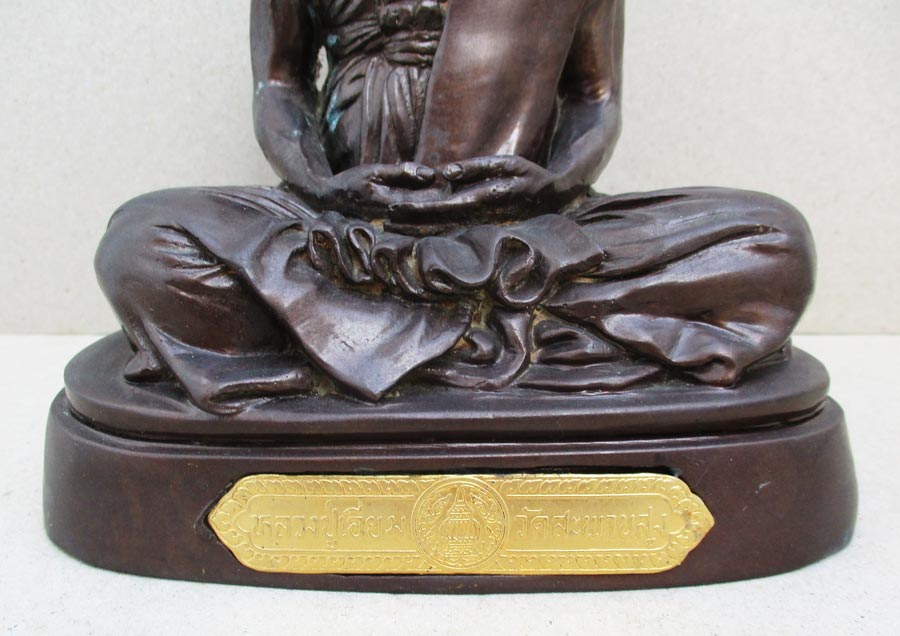 พระบูชา หลวงปู่เอี่ยม วัดสะพานสูง รุ่น 440 ปี จ.นนทบุรี ติดป้ายสีทอง หน้าตัก 5 นิ้ว เนื้อโลหะรมมันปู สภาพผิวสวย !!