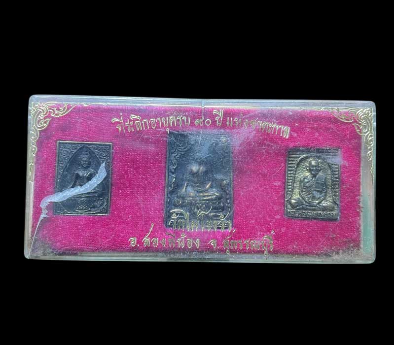 พระชุด3องค์ ที่ระลึกอายุ 90 ปี หลวงพ่อขอม วัดไผ่โรงวัว จ.สุพรรณบุรี พร้อมกล่องเดิม