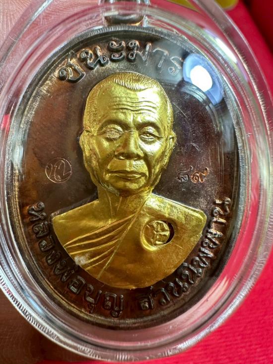 เหรียญหลวงปู่บุญ วัดปอแดงรุ่นชนะมารปี 2558 เนื้อนวะหน้าทองคำ (สร้าง100) หมานเลข 89 จมูก100 เลี่ยมรักษาผิว