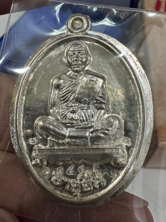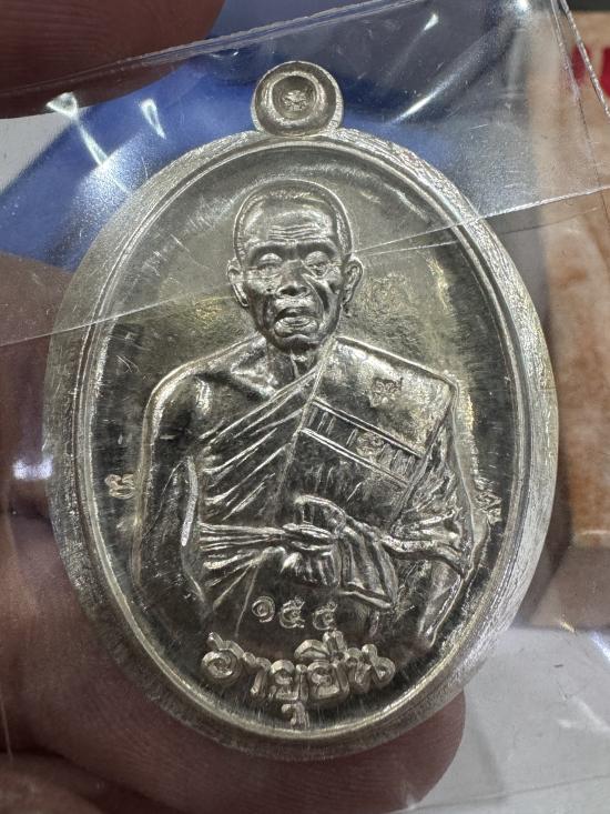 เหรียญอายุยืน รุ่นพิเศษ ปี2553 เนื้อเงิน ไม่ตัดปีก พิมพ์2หน้า no.155 มีกล่อง