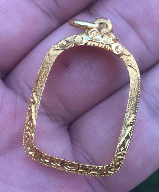 ****กรอบทองคำ สภาพดีมากๆ แกะลายสวยๆ หนัก 4.04กรัม ใส่พระ หลวงปู่บุญ ซุ้มโค้ง ปี2459 ((กรอบทองคำ74.77%))