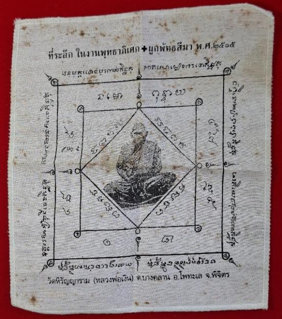 ผ้ายันต์ หลวงพ่อเงิน วัดบางคลาน จ.พิจิตร ปี2515 (พิธีเดียวกับรูปหล่อหลวงพ่อเงิน วัดบางคลาน ปี2515 สภาพสวย นิยม หายาก) |