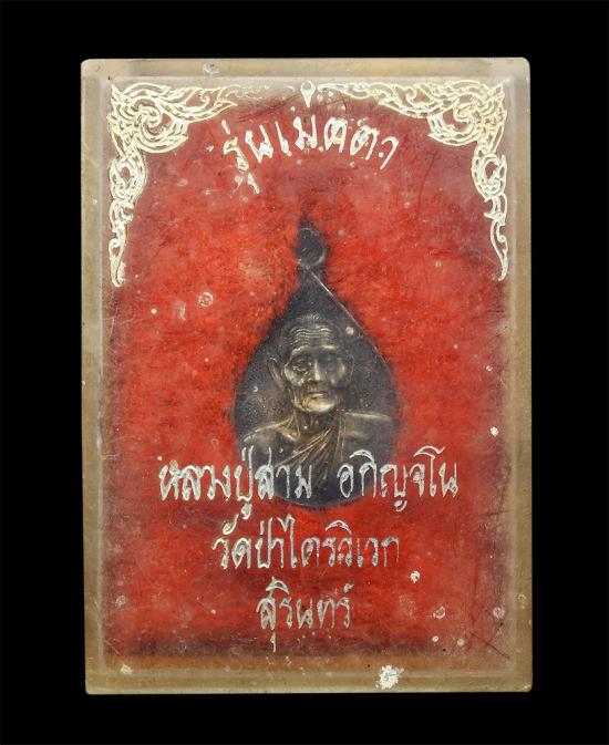 เหรียญหยดน้ำพิมพ์เล็ก(เนื้อเงิน)หลวงปู่สาม อภิญจโน วัดป่าไตรวิเวก จ.สุรินทร์ ปี 2534 มีกล่องเดิม