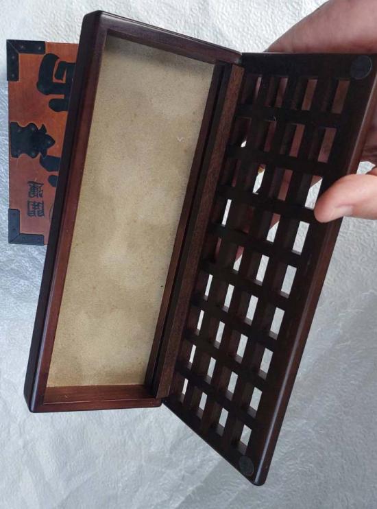 **กล่องไม้ขนาด 8.7 X 3.5 นิ้วหนา 1.5 นิ้วเป็นงานหัตถกรรมที่มีความละเอียดอ่อน เก่าสะสมสามารถใส่อุปกรณ์พระเครื่อง